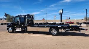 Flatbed tow trucks have a flat platform at the back that can be inclined and lowered to the ground. They are used to transporting vehicles securely, especially those that cannot be towed with two wheels on the ground.